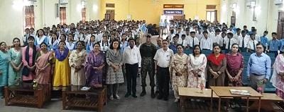 लेफ्टिनेंट हर्ष गोहिया ने विद्यालय के सभागार में उपस्थित शिक्षकों और छात्र-छात्राओं को संबोधित किया।