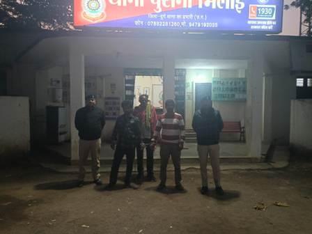आरोपीयो की गिरफ्तारी हेतु थाना पुरानी भिलाई की टीम व्दारा पता तलास के दौरान फरार आरोपीयो को मुखबीर लगाकर मुखबीर की सूचना पर आरोपी 1. मो० दिलकश पिता मो० जाविर उम्र 25 साल, 2. मो० लाडले अली पिता मो० जाविर बली उम्र 20 साल, 3. मो० जाबिर अली पिता स्व. अब्दुल अजीज उम्र 50 साल , 03 आपचारी बालको सभी रहने वाले सेक्टर 11, जोन01 खुर्सीपार, हॉल पता शीतला पारा हथखोज थाना पुरानी भिलाई को घेराबंदी कर पकड़ा गया।