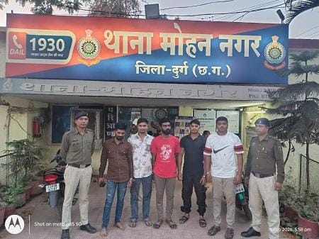 दुर्ग पुलिस ने बड़ी कार्रवाई करते हुए भारत–पाक टी-20 क्रिकेट मैच पर ऑनलाइन सट्टा चलाने वाले गिरोह का पर्दाफाश किया है। थाना मोहन नगर क्षेत्र में छापेमारी कर 5 आरोपियों को गिरफ्तार किया गया। पुलिस ने मौके से नगदी, मोबाइल फोन और लैपटॉप सहित लाखों रुपये का सामान जब्त किया है।