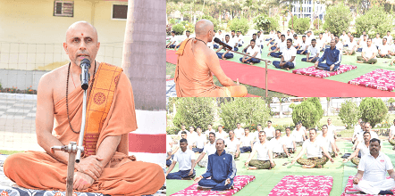 कार्यक्रम में विश्व प्रसिद्ध योग संस्था Bihar School of Yoga के अध्यक्ष Swami Shivdhyanam Saraswati ने पुलिस बल को संबोधित किया।