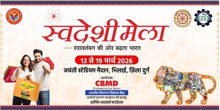 भिलाई । स्वदेशी जागरण फाउंडेशन की इकाई भारतीय विपणन विकास केंद्र *CBMD* द्वारा आयोजित होने वाले स्वदेशी मेले का भव्य शुभारंभ कल 13 मार्च को शाम 7 बजे किया जाएगा। इस अवसर पर प्रदेश के मुख्यमंत्री श्री विष्णु देव साय जी मुख्य अतिथि के रूप में उपस्थित रहेंगे और मेले का औपचारिक उद्घाटन करेंगे।