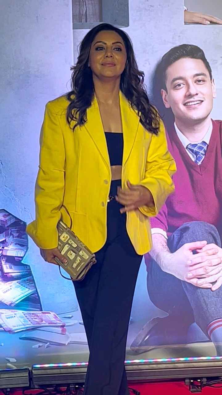 गौरी खान भी सलमान खान की भांजी की फिल्म फर्रे की स्क्रीनिंग का हिस्सा बनी थीं. स्क्रीनिंग पर गौरी खान ब्लैक शॉर्ट टॉप और पैंट के साथ पीला कोट कैरी किए दिखाई दीं.