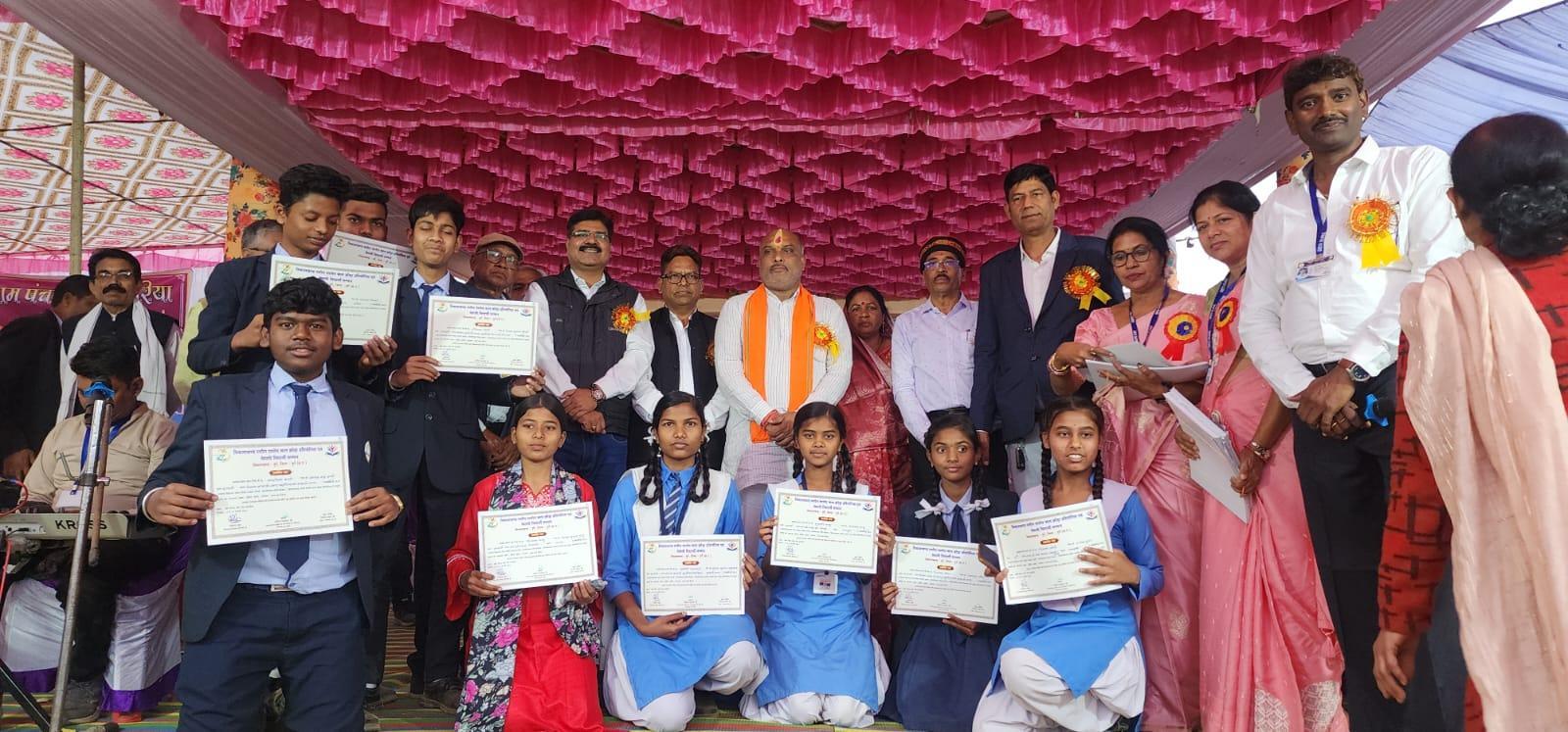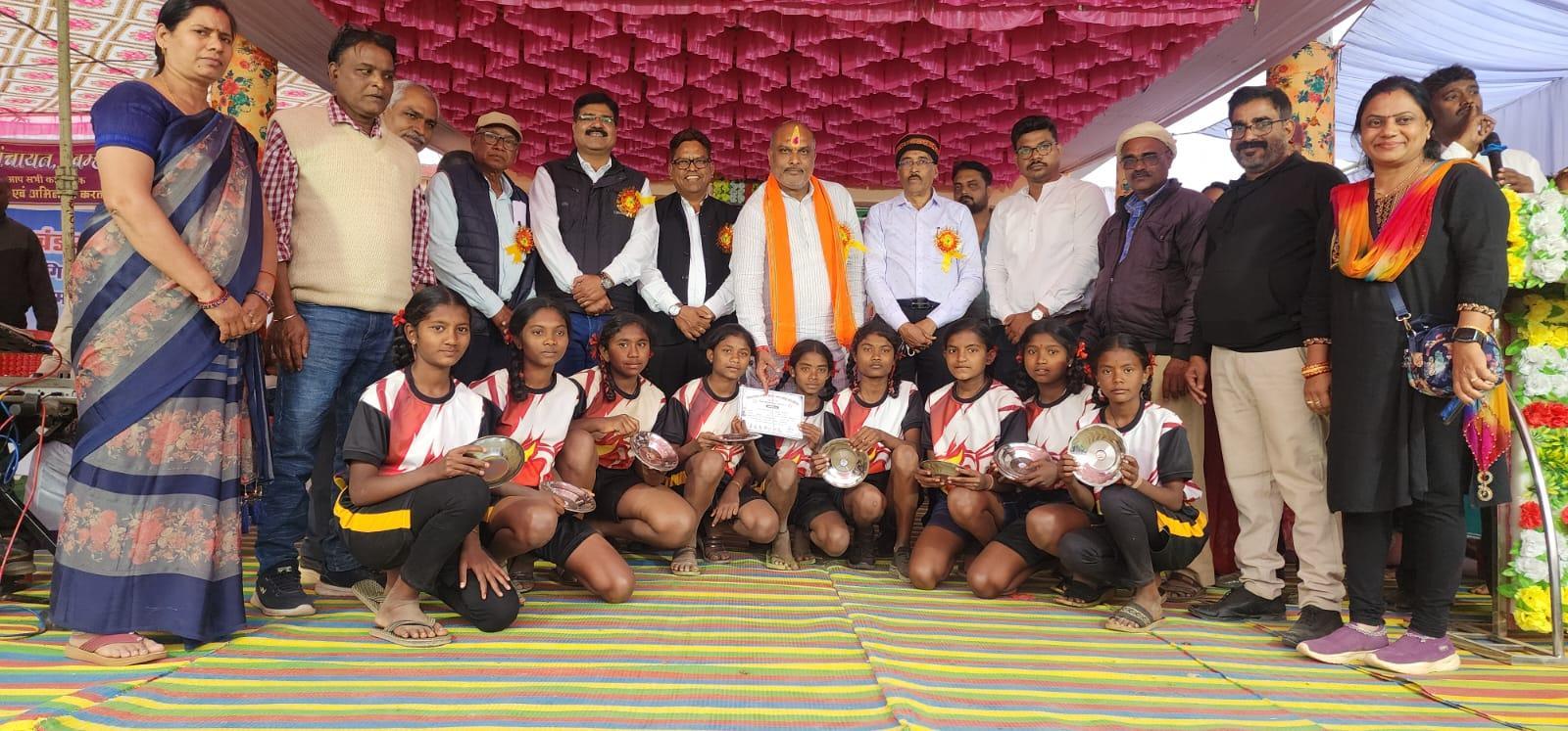 कार्यक्रम की शुरुआत मां ज्ञान दायिनी सरस्वती के अर्चना व राज्य गीत के साथ किया गया ।विभिन्न खेलों में प्रथम द्वितीय तृतीय स्थान प्राप्त करने वाले प्रतिभागियों को सम्मानित किया ।साथ ही मेधावी छात्र- छात्राओं को सम्मानित किया।