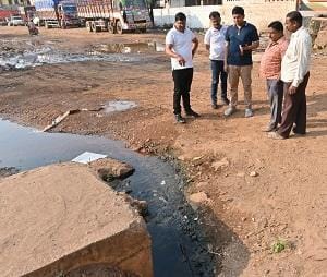 इसका निरीक्षण करने आयुक्त राजीव कुमार पाण्डेय, जोन आयुक्त अजय सिंह राजपूत को लेकर स्वयं गये थे। निर्माण एजेंसी का कहना था कि हमने नाले के बहाव को रोकने के लिए बीच में राष्ट्रीय राजमार्ग के दुसरी तरफ पानी को डायवर्ट कर दिया है। इसके लिए बीच में बालू से भरा बोरी रख दिया गया।