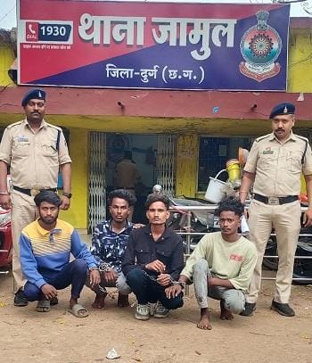 भिलाई के पुलिस अधीक्षक जितेन्द्र शुक्ला के निर्देश पर, अतिरिक्त पुलिस अधीक्षक (शहर) सुखनंदन राठौर एवं नगर पुलिस अधीक्षक (छावनी) हरीश पाटिल के मार्गदर्शन में जामुल थाना प्रभारी कपिलदेव पांडे व टीम ने आरोपियों को 15 अप्रैल 2025 को गिरफ्तार कर न्यायिक रिमांड पर जेल भेज दिया।