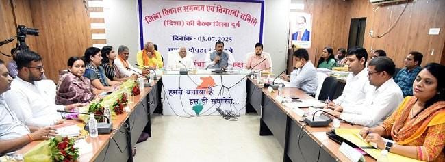 दुर्ग / सांसद विजय बघेल की अध्यक्षता में जिला विकास समन्वय एवं निगरानी समिति (दिशा) की बैठक कल जिला पंचायत के सभाकक्ष में सम्पन्न हुई, जिसमें जिले में संचालित राज्य एवं केंद्र सरकार की विभिन्न योजनाओं की प्रगति की समीक्षा की गई। बैठक की अध्यक्षता करते हुए।