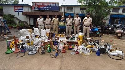 दुर्ग-भिलाई शहर के पान दुकानों एवं डेली निड्स की दुकानों पर चोरी-छिपे दुकान संचालकों व्दारा लोगों को अवैध रूप से तम्बाखू युक्त हुक्का का सेवन कराएं जाने की प्राप्त हो रही सूचना को दृष्टिगत रखते हुए दिनांक 08.07.2025 को अवैध रुप से नशा का सेवन करवाने वाले के विरुद्ध वैधानिक कार्यवाही करने हेतु वरिष्ठ पुलिस अधीक्षक दुर्ग विजय अग्रवाल के द्वारा दिये गये दिशा निर्देश में थाना/चौकियों से टीम गठित कर अभियान चलाया गया ।